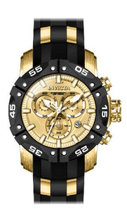 INVICTA Pro Diver Men 52.5mm Stainless Steel Gold Gold dial VK68A Quartz , Band Material: Silicone, Band Tone: Gold,Black, Band Size [mm]: 26, Band Length [mm]: 210, Buckle Type: Buckle , Crown Type : Push, Case Material : Stainless Steel, Case Tone : Gold, Case Size (mm) : 52.5, Case Back : Solid, Material of Hands : Metal, Color of Hands : White,Gold, Crystal Type : Flame Fusion, Bezel Material : Stainless Steel, Dial Material : Metal, Dial Color : Gold .Purchasing these parts and having a non-authorized repair center open your watch voids all manufacturing warranties. Invicta cannot guarantee the quality standards of an altered timepiece, the standard 3-year limited warranty on Invicta timepieces shall be invalid if the timepiece is serviced at any time by an unauthorized repair center. This includes battery replacements, which must be done at an Invicta authorized repair center in order to maintain the eligibility of the warranty. Please follow the link below to learn more about Invicta's warranty.https://cdn.invictawatch.com/www/files/invicta-warranty-2018.pdf