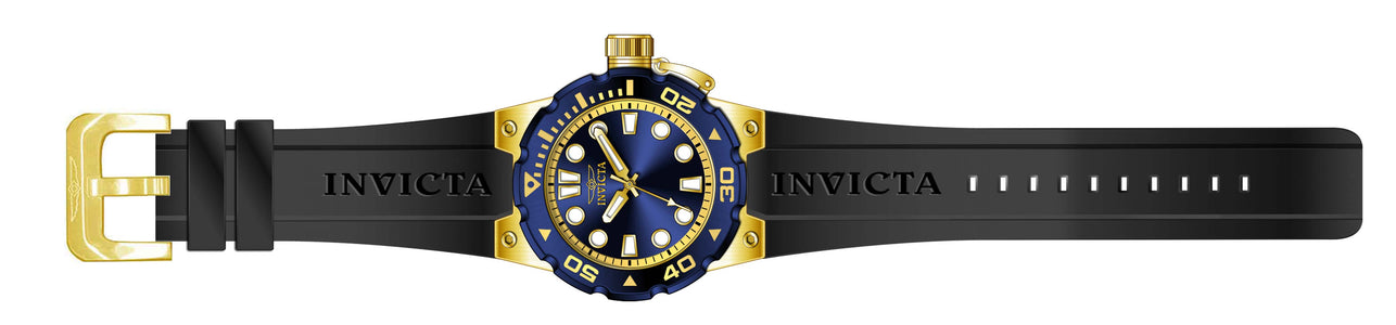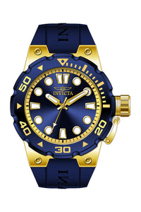 INVICTA Pro Diver Men 51mm Stainless Steel Gold Blue dial PC21J Quartz , Band Material: Silicone, Band Tone: Blue, Band Size [mm]: 32, Band Length [mm]: 225, Buckle Type: Buckle , Crown Type : Screw Down, Case Material : Stainless Steel, Case Tone : Gold, Case Size (mm) : 51, Case Back : Solid, Material of Hands : Metal, Color of Hands : Gold, Crystal Type : Flame Fusion, Bezel Material : Stainless Steel, Dial Material : Metal, Dial Color : Blue, Dial Pattern : Sun-ray Finish .Purchasing these parts and having a non-authorized repair center open your watch voids all manufacturing warranties. Invicta cannot guarantee the quality standards of an altered timepiece, the standard 3-year limited warranty on Invicta timepieces shall be invalid if the timepiece is serviced at any time by an unauthorized repair center. This includes battery replacements, which must be done at an Invicta authorized repair center in order to maintain the eligibility of the warranty. Please follow the link below to learn more about Invicta's warranty.https://cdn.invictawatch.com/www/files/invicta-warranty-2018.pdf