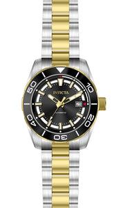 INVICTA Pro Diver Men 45mm Stainless Steel Gold + Black + Steel Black dial NH35A Automatic , Band Material: Stainless Steel, Band Tone: Steel,Gold, Band Size [mm]: 22, Band Length [mm]: 210, Buckle Type: Fold over safety , Crown Type : Push, Case Material : Stainless Steel, Case Tone : Gold,Black,Steel, Case Size (mm) : 45, Case Back : Exhibition, Material of Hands : Metal, Color of Hands : Gold,Luminous, Crystal Type : Flame Fusion, Bezel Material : Stainless Steel, Dial Material : Metal, Dial Color : Black, Dial Pattern : Sun-ray Finish .Purchasing these parts and having a non-authorized repair center open your watch voids all manufacturing warranties. Invicta cannot guarantee the quality standards of an altered timepiece, the standard 3-year limited warranty on Invicta timepieces shall be invalid if the timepiece is serviced at any time by an unauthorized repair center. This includes battery replacements, which must be done at an Invicta authorized repair center in order to maintain the eligibility of the warranty. Please follow the link below to learn more about Invicta's warranty.https://cdn.invictawatch.com/www/files/invicta-warranty-2018.pdf