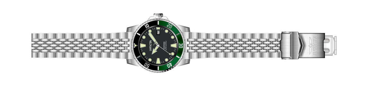 INVICTA Pro Diver Men 44mm Stainless Steel Steel Black dial NH35A Automatic , Band Material: Stainless Steel, Band Tone: Steel, Band Size [mm]: 22, Band Length [mm]: 215, Buckle Type: Fold over safety , Crown Type : Push, Case Material : Stainless Steel, Case Tone : Steel, Case Size (mm) : 44, Case Back : Exhibition, Material of Hands : Metal, Color of Hands : Silver,Luminous, Crystal Type : Mineral, Bezel Material : Stainless Steel, Dial Material : Metal, Dial Color : Black, Dial Pattern : None .Purchasing these parts and having a non-authorized repair center open your watch voids all manufacturing warranties. Invicta cannot guarantee the quality standards of an altered timepiece, the standard 3-year limited warranty on Invicta timepieces shall be invalid if the timepiece is serviced at any time by an unauthorized repair center. This includes battery replacements, which must be done at an Invicta authorized repair center in order to maintain the eligibility of the warranty. Please follow the link below to learn more about Invicta's warranty.https://cdn.invictawatch.com/www/files/invicta-warranty-2018.pdf