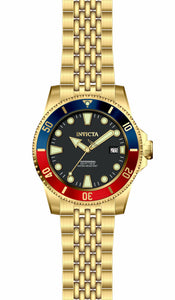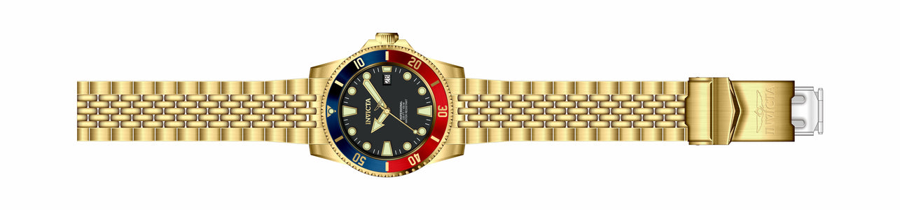INVICTA Pro Diver Men 44mm Stainless Steel Gold Black dial NH35A Automatic , Band Material: Stainless Steel, Band Tone: Gold, Band Size [mm]: 22, Band Length [mm]: 215, Buckle Type: Fold over safety , Crown Type : Push, Case Material : Stainless Steel, Case Tone : Gold, Case Size (mm) : 44, Case Back : Exhibition, Material of Hands : Metal, Color of Hands : Gold,Luminous, Crystal Type : Mineral, Bezel Material : Stainless Steel, Dial Material : Metal, Dial Color : Black, Dial Pattern : None .Purchasing these parts and having a non-authorized repair center open your watch voids all manufacturing warranties. Invicta cannot guarantee the quality standards of an altered timepiece, the standard 3-year limited warranty on Invicta timepieces shall be invalid if the timepiece is serviced at any time by an unauthorized repair center. This includes battery replacements, which must be done at an Invicta authorized repair center in order to maintain the eligibility of the warranty. Please follow the link below to learn more about Invicta's warranty.https://cdn.invictawatch.com/www/files/invicta-warranty-2018.pdf