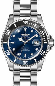INVICTA Pro Diver Men 40mm Stainless Steel Steel Blue dial PC32 Quartz , Band Material: Stainless Steel, Band Tone: Steel, Band Size [mm]: 20, Band Length [mm]: 180, Buckle Type: Fold over safety , Crown Type : Screw Down, Case Material : Stainless Steel, Case Tone : Steel, Case Size (mm) : 40, Case Back : Solid, Material of Hands : Metal, Color of Hands : White,Silver, Crystal Type : Flame Fusion, Bezel Material : Stainless Steel,Aluminum, Dial Material : Metal, Dial Color : Blue, Dial Pattern : Sun-ray Finish .Purchasing these parts and having a non-authorized repair center open your watch voids all manufacturing warranties. Invicta cannot guarantee the quality standards of an altered timepiece, the standard 3-year limited warranty on Invicta timepieces shall be invalid if the timepiece is serviced at any time by an unauthorized repair center. This includes battery replacements, which must be done at an Invicta authorized repair center in order to maintain the eligibility of the warranty. Please follow the link below to learn more about Invicta's warranty.https://cdn.invictawatch.com/www/files/invicta-warranty-2018.pdf