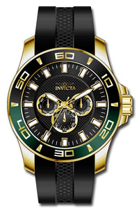 Band Material: Silicone, Band Tone: Black, Band Width: 26MM, Band Length: 210MM, Crown Type: Push, Case Material: Stainless Steel, Case Tone: Gold, Case Size [mm]: 50, Case Back: Solid, Material of Hands: Metal, Color of Hands: White,Gold, Crystal Type: Flame Fusion, Bezel Material: Stainless Steel,Aluminum, Dial Material: Metal, Dial Color: Black, Dial Pattern: Textured Pattern .Purchasing these parts and having a non-authorized repair center open your watch voids all manufacturing warranties. Invicta cannot guarantee the quality standards of an altered timepiece, the standard 3-year limited warranty on Invicta timepieces shall be invalid if the timepiece is serviced at any time by an unauthorized repair center. This includes battery replacements, which must be done at an Invicta authorized repair center in order to maintain the eligibility of the warranty. Please follow the link below to learn more about Invicta's warranty.https://cdn.invictawatch.com/www/files/invicta-warranty-2018.pdf