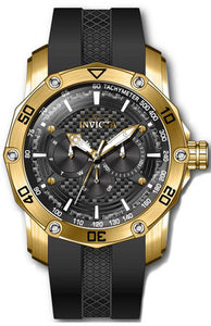 Band Material: Silicone, Band Tone: Black, Band Width: 26MM, Band Length: 210MM, Crown Type: Push, Case Material: Stainless Steel, Case Tone: Gold, Case Size [mm]: 50, Case Back: Solid, Material of Hands: Metal, Color of Hands: Gold, Crystal Type: Flame Fusion, Bezel Material: Stainless Steel, Dial Material: Metal,Carbon Fiber, Dial Color: Black, Dial Pattern: Sun-ray Finish .Purchasing these parts and having a non-authorized repair center open your watch voids all manufacturing warranties. Invicta cannot guarantee the quality standards of an altered timepiece, the standard 3-year limited warranty on Invicta timepieces shall be invalid if the timepiece is serviced at any time by an unauthorized repair center. This includes battery replacements, which must be done at an Invicta authorized repair center in order to maintain the eligibility of the warranty. Please follow the link below to learn more about Invicta's warranty.https://cdn.invictawatch.com/www/files/invicta-warranty-2018.pdf