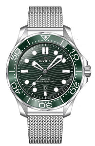 Band Material: Mesh, Band Tone: Steel, Band Width: 20MM, Band Length: 210MM, Crown Type: Push, Case Material: Stainless Steel, Case Tone: Steel, Case Size [mm]: 44, Case Back: Solid, Material of Hands: Metal, Color of Hands: Silver, Crystal Type: Flame Fusion, Bezel Material: Stainless Steel,Aluminum, Dial Material: Metal, Dial Color: Green .Purchasing these parts and having a non-authorized repair center open your watch voids all manufacturing warranties. Invicta cannot guarantee the quality standards of an altered timepiece, the standard 3-year limited warranty on Invicta timepieces shall be invalid if the timepiece is serviced at any time by an unauthorized repair center. This includes battery replacements, which must be done at an Invicta authorized repair center in order to maintain the eligibility of the warranty. Please follow the link below to learn more about Invicta's warranty.https://cdn.invictawatch.com/www/files/invicta-warranty-2018.pdf