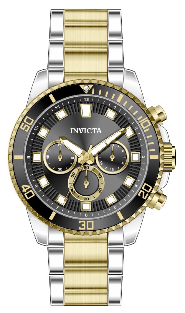 Band Material: Stainless Steel, Band Tone: Steel,Gold, Band Width: 22MM, Band Length: 187MM, Crown Type: Push, Case Material: Stainless Steel, Case Tone: Steel, Case Size [mm]: 45, Crystal Type: Flame Fusion, Dial Material: Brass, Dial Color: Black .Purchasing these parts and having a non-authorized repair center open your watch voids all manufacturing warranties. Invicta cannot guarantee the quality standards of an altered timepiece, the standard 3-year limited warranty on Invicta timepieces shall be invalid if the timepiece is serviced at any time by an unauthorized repair center. This includes battery replacements, which must be done at an Invicta authorized repair center in order to maintain the eligibility of the warranty. Please follow the link below to learn more about Invicta's warranty.https://cdn.invictawatch.com/www/files/invicta-warranty-2018.pdf