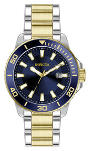 Band Material: Stainless Steel, Band Tone: Steel,Gold, Band Width: 22MM, Band Length: 191MM, Crown Type: Push, Case Material: Stainless Steel, Case Tone: Steel, Case Size [mm]: 45, Crystal Type: Flame Fusion, Dial Material: Brass, Dial Color: Blue .Purchasing these parts and having a non-authorized repair center open your watch voids all manufacturing warranties. Invicta cannot guarantee the quality standards of an altered timepiece, the standard 3-year limited warranty on Invicta timepieces shall be invalid if the timepiece is serviced at any time by an unauthorized repair center. This includes battery replacements, which must be done at an Invicta authorized repair center in order to maintain the eligibility of the warranty. Please follow the link below to learn more about Invicta's warranty.https://cdn.invictawatch.com/www/files/invicta-warranty-2018.pdf