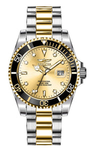 Band Material: Stainless Steel, Band Tone: Steel,Gold, Band Width: 20MM, Band Length: 180MM, Crown Type: Push, Case Material: Stainless Steel, Case Tone: Steel, Case Size [mm]: 40, Case Back: Solid, Material of Hands: Metal, Color of Hands: Gold, Crystal Type: Flame Fusion, Bezel Material: Stainless Steel,Aluminum, Dial Material: Metal, Dial Color: Gold, Dial Pattern: None .Purchasing these parts and having a non-authorized repair center open your watch voids all manufacturing warranties. Invicta cannot guarantee the quality standards of an altered timepiece, the standard 3-year limited warranty on Invicta timepieces shall be invalid if the timepiece is serviced at any time by an unauthorized repair center. This includes battery replacements, which must be done at an Invicta authorized repair center in order to maintain the eligibility of the warranty. Please follow the link below to learn more about Invicta's warranty.https://cdn.invictawatch.com/www/files/invicta-warranty-2018.pdf
