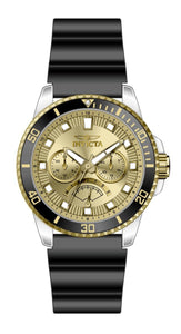 Band Material: Silicone, Band Tone: Black, Band Width: 22MM, Band Length: 225MM, Crown Type: Push, Case Material: Stainless Steel, Case Tone: Steel, Case Size [mm]: 45, Crystal Type: Flame Fusion, Dial Material: Brass, Dial Color: Gold .Purchasing these parts and having a non-authorized repair center open your watch voids all manufacturing warranties. Invicta cannot guarantee the quality standards of an altered timepiece, the standard 3-year limited warranty on Invicta timepieces shall be invalid if the timepiece is serviced at any time by an unauthorized repair center. This includes battery replacements, which must be done at an Invicta authorized repair center in order to maintain the eligibility of the warranty. Please follow the link below to learn more about Invicta's warranty.https://cdn.invictawatch.com/www/files/invicta-warranty-2018.pdf