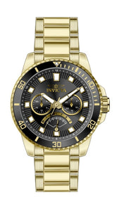 Band Material: Stainless Steel, Band Tone: Gold, Band Width: 22MM, Band Length: 187MM, Crown Type: Push, Case Material: Stainless Steel, Case Tone: Gold, Case Size [mm]: 45, Crystal Type: Flame Fusion, Dial Material: Brass, Dial Color: Black .Purchasing these parts and having a non-authorized repair center open your watch voids all manufacturing warranties. Invicta cannot guarantee the quality standards of an altered timepiece, the standard 3-year limited warranty on Invicta timepieces shall be invalid if the timepiece is serviced at any time by an unauthorized repair center. This includes battery replacements, which must be done at an Invicta authorized repair center in order to maintain the eligibility of the warranty. Please follow the link below to learn more about Invicta's warranty.https://cdn.invictawatch.com/www/files/invicta-warranty-2018.pdf