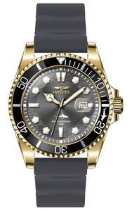 Band Material: Silicone, Band Tone: Grey, Band Width: 22MM, Band Length: 210MM, Crown Type: Screw Down, Case Material: Stainless Steel, Case Tone: Gold, Case Size [mm]: 43, Case Back: Solid, Material of Hands: Metal, Color of Hands: Gold, Crystal Type: Flame Fusion, Bezel Material: Stainless Steel,Aluminum, Dial Material: Metal, Dial Color: Charcoal .Purchasing these parts and having a non-authorized repair center open your watch voids all manufacturing warranties. Invicta cannot guarantee the quality standards of an altered timepiece, the standard 3-year limited warranty on Invicta timepieces shall be invalid if the timepiece is serviced at any time by an unauthorized repair center. This includes battery replacements, which must be done at an Invicta authorized repair center in order to maintain the eligibility of the warranty. Please follow the link below to learn more about Invicta's warranty.https://cdn.invictawatch.com/www/files/invicta-warranty-2018.pdf