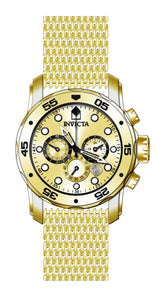 Band Material: Stainless Steel, Band Tone: Gold, Band Width: 26MM, Band Length: 186MM, Crown Type: Push, Case Material: Stainless Steel, Case Tone: Gold, Case Size [mm]: 48, Crystal Type: Flame Fusion, Dial Material: Brass, Dial Color: Gold .Purchasing these parts and having a non-authorized repair center open your watch voids all manufacturing warranties. Invicta cannot guarantee the quality standards of an altered timepiece, the standard 3-year limited warranty on Invicta timepieces shall be invalid if the timepiece is serviced at any time by an unauthorized repair center. This includes battery replacements, which must be done at an Invicta authorized repair center in order to maintain the eligibility of the warranty. Please follow the link below to learn more about Invicta's warranty.https://cdn.invictawatch.com/www/files/invicta-warranty-2018.pdf