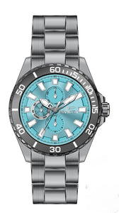 Band Material: Stainless Steel, Band Tone: Charcoal, Band Width: 24MM, Band Length: 185MM, Crown Type: Push, Case Material: Stainless Steel, Case Tone: Charcoal, Case Size [mm]: 46, Crystal Type: Flame Fusion, Dial Material: Brass, Dial Color: Light Blue .Purchasing these parts and having a non-authorized repair center open your watch voids all manufacturing warranties. Invicta cannot guarantee the quality standards of an altered timepiece, the standard 3-year limited warranty on Invicta timepieces shall be invalid if the timepiece is serviced at any time by an unauthorized repair center. This includes battery replacements, which must be done at an Invicta authorized repair center in order to maintain the eligibility of the warranty. Please follow the link below to learn more about Invicta's warranty.https://cdn.invictawatch.com/www/files/invicta-warranty-2018.pdf