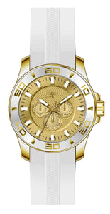 Band Material: Silicone, Band Tone: White, Band Width: 26MM, Band Length: 225MM, Crown Type: Push, Case Material: Stainless Steel, Case Tone: Gold, Case Size [mm]: 50, Case Back: Solid, Material of Hands: Metal, Color of Hands: Gold,Luminous, Crystal Type: Flame Fusion, Bezel Material: Aluminum, Dial Material: Metal, Dial Color: Gold, Dial Pattern: Embossed pattern .Purchasing these parts and having a non-authorized repair center open your watch voids all manufacturing warranties. Invicta cannot guarantee the quality standards of an altered timepiece, the standard 3-year limited warranty on Invicta timepieces shall be invalid if the timepiece is serviced at any time by an unauthorized repair center. This includes battery replacements, which must be done at an Invicta authorized repair center in order to maintain the eligibility of the warranty. Please follow the link below to learn more about Invicta's warranty.https://cdn.invictawatch.com/www/files/invicta-warranty-2018.pdf