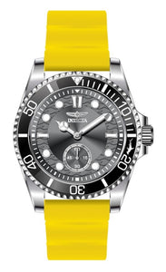 Band Material: Silicone, Band Tone: Yellow, Band Width: 22MM, Band Length: 210MM, Crown Type: Screw Down, Case Material: Stainless Steel, Case Tone: Steel, Case Size [mm]: 43, Case Back: Solid, Material of Hands: Brass, Color of Hands: Silver,Luminous, Crystal Type: Mineral, Bezel Material: Stainless Steel,Aluminum, Dial Material: Brass, Dial Color: Charcoal, Dial Pattern: Sun-ray Finish .Purchasing these parts and having a non-authorized repair center open your watch voids all manufacturing warranties. Invicta cannot guarantee the quality standards of an altered timepiece, the standard 3-year limited warranty on Invicta timepieces shall be invalid if the timepiece is serviced at any time by an unauthorized repair center. This includes battery replacements, which must be done at an Invicta authorized repair center in order to maintain the eligibility of the warranty. Please follow the link below to learn more about Invicta's warranty.https://cdn.invictawatch.com/www/files/invicta-warranty-2018.pdf