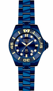 INVICTA Pro Diver Men 47mm Stainless Steel Blue Blue dial NH35A Automatic , Band Material: Stainless Steel, Band Tone: Blue, Band Size [mm]: 22, Band Length [mm]: 210, Buckle Type: Fold over safety , Crown Type : Screw Down, Case Material : Stainless Steel, Case Tone : Blue, Case Size (mm) : 47, Case Back : Exhibition, Material of Hands : Metal, Color of Hands : Gold,Luminous, Crystal Type : Flame Fusion, Bezel Material : Stainless Steel, Dial Material : Metal, Dial Color : Blue, Dial Pattern : Sun-ray Finish .Purchasing these parts and having a non-authorized repair center open your watch voids all manufacturing warranties. Invicta cannot guarantee the quality standards of an altered timepiece, the standard 3-year limited warranty on Invicta timepieces shall be invalid if the timepiece is serviced at any time by an unauthorized repair center. This includes battery replacements, which must be done at an Invicta authorized repair center in order to maintain the eligibility of the warranty. Please follow the link below to learn more about Invicta's warranty.https://cdn.invictawatch.com/www/files/invicta-warranty-2018.pdf