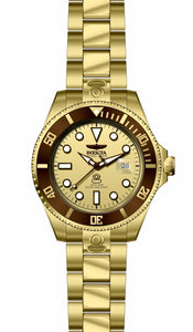 INVICTA Pro Diver Men 47mm Stainless Steel Gold Gold dial NH35A Automatic , Band Material: Stainless Steel, Band Tone: Gold, Band Size [mm]: 22, Band Length [mm]: 205, Buckle Type: Fold over safety , Crown Type : Screw Down, Case Material : Stainless Steel, Case Tone : Gold, Case Size (mm) : 47, Case Back : Exhibition, Material of Hands : Metal, Color of Hands : Brown,Luminous, Crystal Type : Mineral, Bezel Material : Stainless Steel, Dial Material : Metal, Dial Color : Gold, Dial Pattern : None .Purchasing these parts and having a non-authorized repair center open your watch voids all manufacturing warranties. Invicta cannot guarantee the quality standards of an altered timepiece, the standard 3-year limited warranty on Invicta timepieces shall be invalid if the timepiece is serviced at any time by an unauthorized repair center. This includes battery replacements, which must be done at an Invicta authorized repair center in order to maintain the eligibility of the warranty. Please follow the link below to learn more about Invicta's warranty.https://cdn.invictawatch.com/www/files/invicta-warranty-2018.pdf