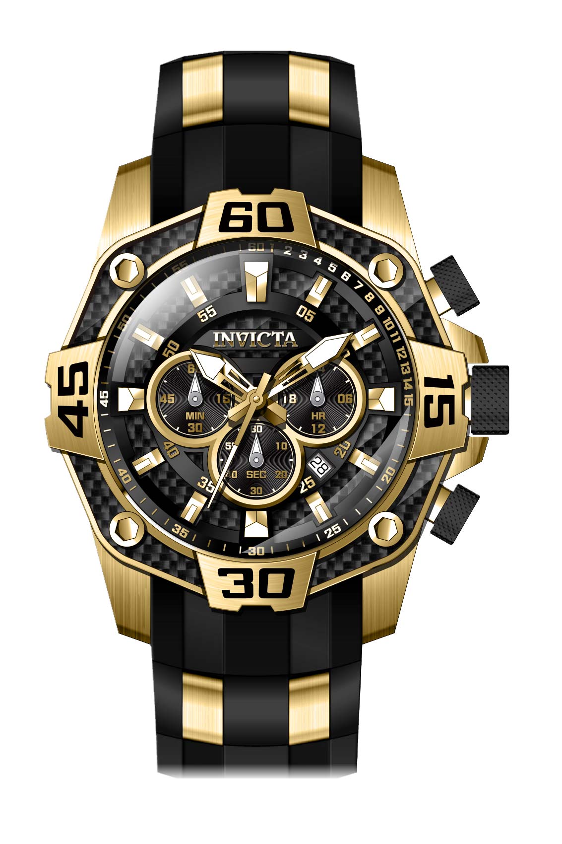 INVICTA Pro Diver Men 52mm Stainless Steel Gold Black+Gold dial VD53 Quartz , Band Material: Stainless Steel,Silicone, Band Tone: Gold,Black, Band Size [mm]: 26, Band Length [mm]: 210, Buckle Type: Buckle , Crown Type : Push, Case Material : Stainless Steel, Case Tone : Gold, Case Size (mm) : 52, Case Back : Solid, Material of Hands : Metal, Color of Hands : White,Gold, Crystal Type : Flame Fusion, Bezel Material : Stainless Steel,Carbon Fiber, Dial Material : Metal,Carbon Fiber, Dial Color : Black,Gold .Purchasing these parts and having a non-authorized repair center open your watch voids all manufacturing warranties. Invicta cannot guarantee the quality standards of an altered timepiece, the standard 3-year limited warranty on Invicta timepieces shall be invalid if the timepiece is serviced at any time by an unauthorized repair center. This includes battery replacements, which must be done at an Invicta authorized repair center in order to maintain the eligibility of the warranty. Please follow the link below to learn more about Invicta's warranty.https://cdn.invictawatch.com/www/files/invicta-warranty-2018.pdf