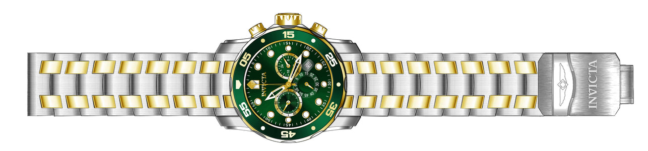 INVICTA Pro Diver Men 48mm Stainless Steel Steel Green dial VD53 Quartz , Band Material: Stainless Steel, Band Tone: Steel,Gold, Band Size [mm]: 26, Band Length [mm]: 215, Buckle Type: Fold over safety , Crown Type : Push, Case Material : Stainless Steel, Case Tone : Steel, Case Size (mm) : 48, Case Back : Solid, Material of Hands : Metal, Color of Hands : White,Gold, Crystal Type : Flame Fusion, Bezel Material : Stainless Steel, Dial Material : Metal, Dial Color : Green, Dial Pattern : Sun-ray Finish .Purchasing these parts and having a non-authorized repair center open your watch voids all manufacturing warranties. Invicta cannot guarantee the quality standards of an altered timepiece, the standard 3-year limited warranty on Invicta timepieces shall be invalid if the timepiece is serviced at any time by an unauthorized repair center. This includes battery replacements, which must be done at an Invicta authorized repair center in order to maintain the eligibility of the warranty. Please follow the link below to learn more about Invicta's warranty.https://cdn.invictawatch.com/www/files/invicta-warranty-2018.pdf