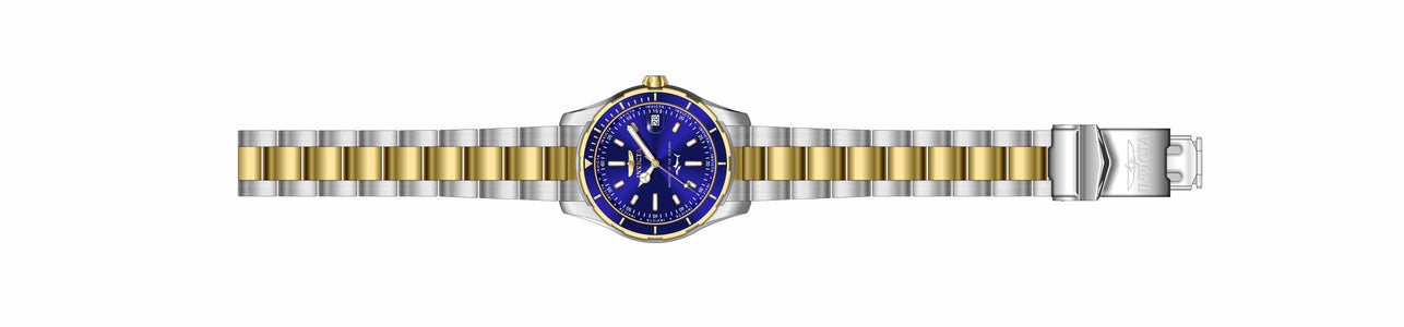 INVICTA Pro Diver Lady 34mm Stainless Steel Gold + Steel Blue dial PC32 Quartz , Band Material: Stainless Steel, Band Tone: Steel,Gold, Band Size [mm]: 16, Band Length [mm]: 195, Buckle Type: Fold over safety , Crown Type : Push, Case Material : Stainless Steel, Case Tone : Gold,Steel, Case Size (mm) : 34, Case Back : Solid, Material of Hands : Metal, Color of Hands : Gold,Luminous, Crystal Type : Flame Fusion, Bezel Material : Stainless Steel, Dial Material : Metal, Dial Color : Blue, Dial Pattern : Sun-ray Finish .Purchasing these parts and having a non-authorized repair center open your watch voids all manufacturing warranties. Invicta cannot guarantee the quality standards of an altered timepiece, the standard 3-year limited warranty on Invicta timepieces shall be invalid if the timepiece is serviced at any time by an unauthorized repair center. This includes battery replacements, which must be done at an Invicta authorized repair center in order to maintain the eligibility of the warranty. Please follow the link below to learn more about Invicta's warranty.https://cdn.invictawatch.com/www/files/invicta-warranty-2018.pdf