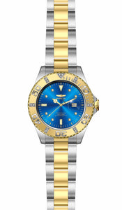 INVICTA Pro Diver Lady 38mm Stainless Steel Gold + Steel Blue dial 585 Quartz , Band Material: Stainless Steel, Band Tone: Steel,Gold, Band Size [mm]: 18, Band Length [mm]: 190, Buckle Type: Fold over safety , Crown Type : Screw Down, Case Material : Stainless Steel, Case Tone : Gold,Steel, Case Size (mm) : 38, Case Back : Solid, Material of Hands : Metal, Color of Hands : Gold,Luminous, Crystal Type : Mineral, Bezel Material : Stainless Steel, Dial Material : Metal, Dial Color : Blue, Dial Pattern : Sun-ray Finish .Purchasing these parts and having a non-authorized repair center open your watch voids all manufacturing warranties. Invicta cannot guarantee the quality standards of an altered timepiece, the standard 3-year limited warranty on Invicta timepieces shall be invalid if the timepiece is serviced at any time by an unauthorized repair center. This includes battery replacements, which must be done at an Invicta authorized repair center in order to maintain the eligibility of the warranty. Please follow the link below to learn more about Invicta's warranty.https://cdn.invictawatch.com/www/files/invicta-warranty-2018.pdf
