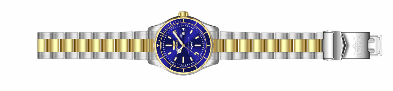 INVICTA Pro Diver Men 46mm Stainless Steel Gold + Steel Blue dial PC32 Quartz , Band Material: Stainless Steel, Band Tone: Gold,Silver, Band Size [mm]: 22, Band Length [mm]: 215, Buckle Type: Fold over safety , Crown Type : Push, Case Material : Stainless Steel, Case Tone : Gold,Steel, Case Size (mm) : 46, Case Back : Solid, Material of Hands : Metal, Color of Hands : Gold,Luminous, Crystal Type : Flame Fusion, Bezel Material : Stainless Steel, Dial Material : Metal, Dial Color : Blue, Dial Pattern : Sun-ray Finish .Purchasing these parts and having a non-authorized repair center open your watch voids all manufacturing warranties. Invicta cannot guarantee the quality standards of an altered timepiece, the standard 3-year limited warranty on Invicta timepieces shall be invalid if the timepiece is serviced at any time by an unauthorized repair center. This includes battery replacements, which must be done at an Invicta authorized repair center in order to maintain the eligibility of the warranty. Please follow the link below to learn more about Invicta's warranty.https://cdn.invictawatch.com/www/files/invicta-warranty-2018.pdf