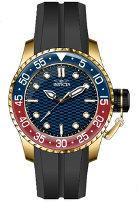 INVICTA Pro Diver Men 50mm Stainless Steel Gold Blue dial PC21J Quartz , Band Material: Silicone, Band Tone: Black, Band Size [mm]: 26, Band Length [mm]: 210, Buckle Type: Buckle , Crown Type : Screw Down, Case Material : Stainless Steel, Case Tone : Gold, Case Size (mm) : 50, Case Back : Solid, Material of Hands : Metal, Color of Hands : Black,Gold, Crystal Type : Flame Fusion, Bezel Material : Stainless Steel, Dial Material : Carbon Fiber, Dial Color : Blue, Dial Pattern : None .Purchasing these parts and having a non-authorized repair center open your watch voids all manufacturing warranties. Invicta cannot guarantee the quality standards of an altered timepiece, the standard 3-year limited warranty on Invicta timepieces shall be invalid if the timepiece is serviced at any time by an unauthorized repair center. This includes battery replacements, which must be done at an Invicta authorized repair center in order to maintain the eligibility of the warranty. Please follow the link below to learn more about Invicta's warranty.https://cdn.invictawatch.com/www/files/invicta-warranty-2018.pdf