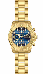 INVICTA Pro Diver Men 43.5mm Stainless Steel Gold Blue dial VD55B Quartz , Band Material: Stainless Steel, Band Tone: Gold, Band Size [mm]: 22, Band Length [mm]: 210, Buckle Type: Fold over safety , Crown Type : Screw Down, Case Material : Stainless Steel, Case Tone : Gold, Case Size (mm) : 43.5, Case Back : Solid, Material of Hands : Metal, Color of Hands : Gold,Luminous, Crystal Type : Flame Fusion, Bezel Material : Stainless Steel, Dial Material : Metal, Dial Color : Blue, Dial Pattern : Sun-ray Finish .Purchasing these parts and having a non-authorized repair center open your watch voids all manufacturing warranties. Invicta cannot guarantee the quality standards of an altered timepiece, the standard 3-year limited warranty on Invicta timepieces shall be invalid if the timepiece is serviced at any time by an unauthorized repair center. This includes battery replacements, which must be done at an Invicta authorized repair center in order to maintain the eligibility of the warranty. Please follow the link below to learn more about Invicta's warranty.https://cdn.invictawatch.com/www/files/invicta-warranty-2018.pdf