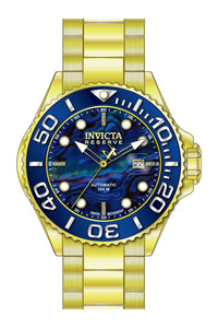 INVICTA Reserve Men 50mm Stainless Steel + Aluminum Gold + Blue + Silver Blue+White dial R150 Automatic , Band Material: Stainless Steel, Band Tone: Gold, Band Size [mm]: 24, Band Length [mm]: 210, Buckle Type: Fold over push button safety , Crown Type : Screw Down, Case Material : Stainless Steel,Aluminum, Case Tone : Gold,Blue,Silver, Case Size (mm) : 50, Case Back : Exhibition, Material of Hands : Metal, Color of Hands : Gold,Luminous, Crystal Type : Sapphire, Bezel Material : Stainless Steel,Aluminum, Dial Material : Metal,Oyster,Abalone, Dial Color : Blue,White, Dial Pattern : None .Purchasing these parts and having a non-authorized repair center open your watch voids all manufacturing warranties. Invicta cannot guarantee the quality standards of an altered timepiece, the standard 3-year limited warranty on Invicta timepieces shall be invalid if the timepiece is serviced at any time by an unauthorized repair center. This includes battery replacements, which must be done at an Invicta authorized repair center in order to maintain the eligibility of the warranty. Please follow the link below to learn more about Invicta's warranty.https://cdn.invictawatch.com/www/files/invicta-warranty-2018.pdf