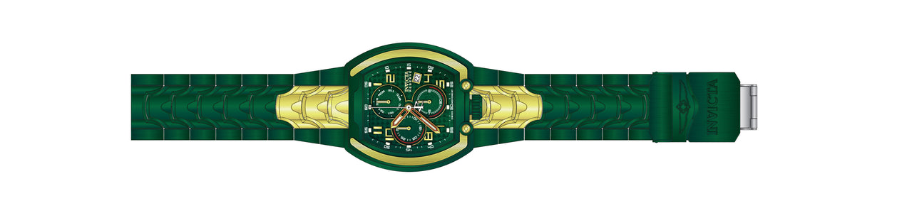 Band Material: Stainless Steel, Band Tone: Gold,Green, Band Width: 34.70MM, Band Length: 230MM, Crown Type: Push, Case Material: Stainless Steel, Case Tone: Gold,Green, Case Size [mm]: 51, Case Back: Solid, Material of Hands: Metal, Color of Hands: Red,Gold,Luminous, Crystal Type: Flame Fusion, Bezel Material: Stainless Steel, Dial Material: Metal,Glass Fiber, Dial Color: Red,Gold,Green .Purchasing these parts and having a non-authorized repair center open your watch voids all manufacturing warranties. Invicta cannot guarantee the quality standards of an altered timepiece, the standard 3-year limited warranty on Invicta timepieces shall be invalid if the timepiece is serviced at any time by an unauthorized repair center. This includes battery replacements, which must be done at an Invicta authorized repair center in order to maintain the eligibility of the warranty. Please follow the link below to learn more about Invicta's warranty.https://cdn.invictawatch.com/www/files/invicta-warranty-2018.pdf