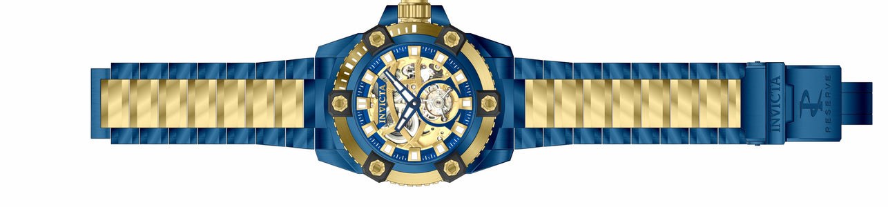 INVICTA Reserve Men 56mm Stainless Steel Gold + Blue Blue dial 3D54B Automatic , Band Material: Stainless Steel, Band Tone: Gold,Blue, Band Size [mm]: 31, Band Length [mm]: 225, Buckle Type: Fold over safety , Crown Type : Push, Case Material : Stainless Steel, Case Tone : Gold,Blue, Case Size (mm) : 56, Case Back : Exhibition, Material of Hands : Metal, Color of Hands : Blue,Luminous, Crystal Type : Flame Fusion, Bezel Material : Stainless Steel, Dial Material : Metal, Dial Color : Blue, Dial Pattern : None .Purchasing these parts and having a non-authorized repair center open your watch voids all manufacturing warranties. Invicta cannot guarantee the quality standards of an altered timepiece, the standard 3-year limited warranty on Invicta timepieces shall be invalid if the timepiece is serviced at any time by an unauthorized repair center. This includes battery replacements, which must be done at an Invicta authorized repair center in order to maintain the eligibility of the warranty. Please follow the link below to learn more about Invicta's warranty.https://cdn.invictawatch.com/www/files/invicta-warranty-2018.pdf