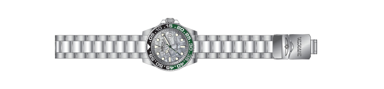 INVICTA Reserve men 46mm Stainless Steel + Aluminum Black + Green + Silver + Steel Silver dial NH35A Automatic , Band Material: Stainless Steel, Band Tone: Steel, Band Size [mm]: 22, Band Length [mm]: 210, Buckle Type: Fold over safety , Crown Type : Screw Down, Case Material : Stainless Steel,Aluminum, Case Tone : Black,Green,Silver,Steel, Case Size (mm) : 46, Case Back : Exhibition, Material of Hands : Metal, Color of Hands : Green,Luminous,Steel, Crystal Type : Mineral, Bezel Material : Stainless Steel,Aluminum, Dial Material : Metal,Meteorite, Dial Color : Silver, Dial Pattern : None .Purchasing these parts and having a non-authorized repair center open your watch voids all manufacturing warranties. Invicta cannot guarantee the quality standards of an altered timepiece, the standard 3-year limited warranty on Invicta timepieces shall be invalid if the timepiece is serviced at any time by an unauthorized repair center. This includes battery replacements, which must be done at an Invicta authorized repair center in order to maintain the eligibility of the warranty. Please follow the link below to learn more about Invicta's warranty.https://cdn.invictawatch.com/www/files/invicta-warranty-2018.pdf