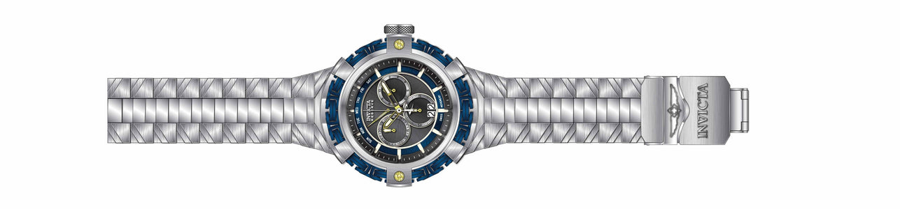 INVICTA Reserve Men 61.50mm Stainless Steel Gold + Dark Blue + Steel Black+Blue dial 8040.N Quartz , Band Material: Stainless Steel, Band Tone: Steel, Band Size [mm]: 30.4, Band Length [mm]: 210, Buckle Type: Fold over safety , Crown Type : Screw Down, Case Material : Stainless Steel, Case Tone : Gold,Dark Blue,Steel, Case Size (mm) : 61.5, Case Back : Solid, Material of Hands : Metal, Color of Hands : Gold,Luminous, Crystal Type : Flame Fusion, Bezel Material : Stainless Steel, Dial Material : Metal, Dial Color : Black,Blue, Dial Pattern : Sun-ray Finish .Purchasing these parts and having a non-authorized repair center open your watch voids all manufacturing warranties. Invicta cannot guarantee the quality standards of an altered timepiece, the standard 3-year limited warranty on Invicta timepieces shall be invalid if the timepiece is serviced at any time by an unauthorized repair center. This includes battery replacements, which must be done at an Invicta authorized repair center in order to maintain the eligibility of the warranty. Please follow the link below to learn more about Invicta's warranty.https://cdn.invictawatch.com/www/files/invicta-warranty-2018.pdf