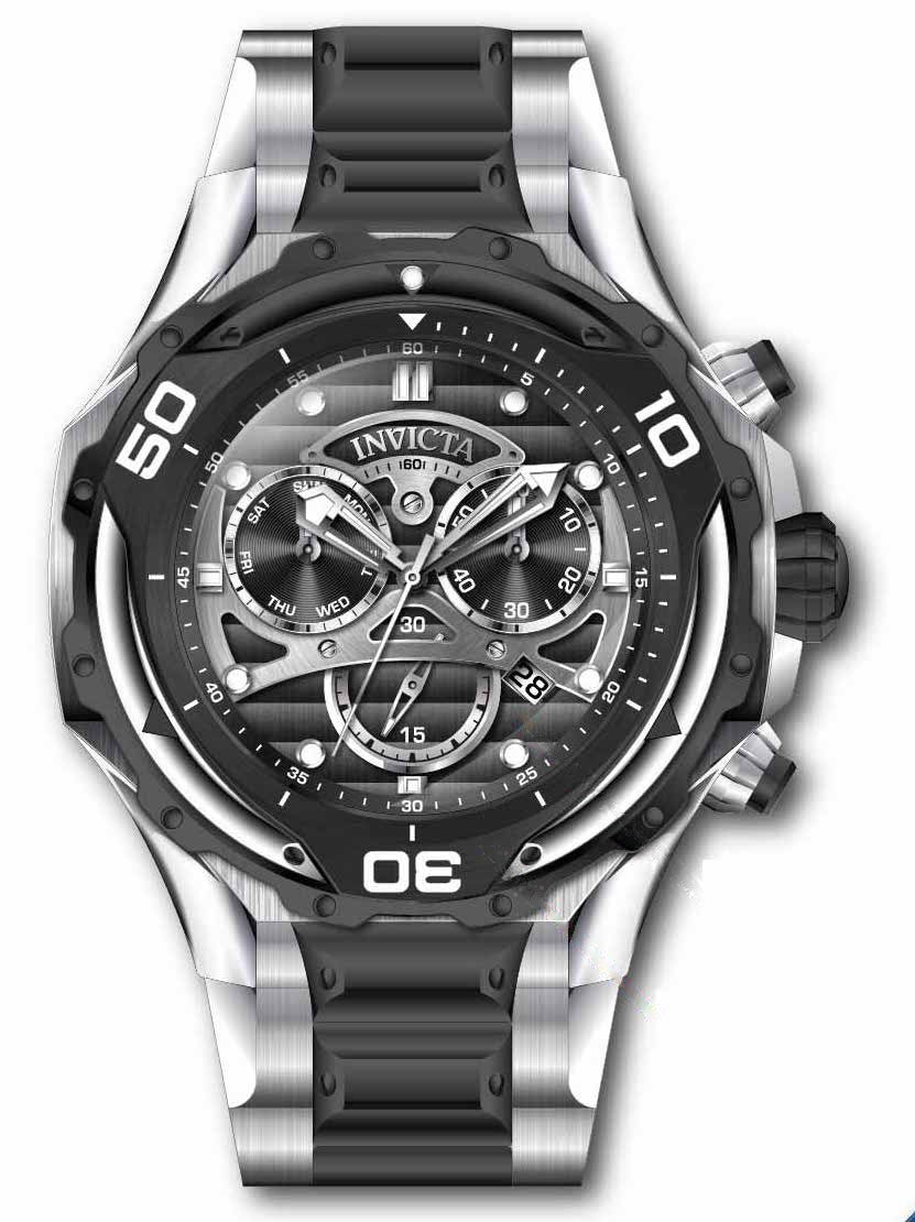 INVICTA S1 Rally Men 54mm Stainless Steel Steel Black dial Z60 FE Quartz , Band Material: Stainless Steel, Band Tone: Steel,Black, Band Size [mm]: 32, Band Length [mm]: 190, Buckle Type: Fold over safety , Crown Type : Push, Case Material : Stainless Steel, Case Tone : Steel, Case Size (mm) : 54, Case Back : Solid, Material of Hands : Metal, Color of Hands : Silver, Crystal Type : Flame Fusion, Bezel Material : Stainless Steel, Dial Material : Metal, Dial Color : Black .Purchasing these parts and having a non-authorized repair center open your watch voids all manufacturing warranties. Invicta cannot guarantee the quality standards of an altered timepiece, the standard 3-year limited warranty on Invicta timepieces shall be invalid if the timepiece is serviced at any time by an unauthorized repair center. This includes battery replacements, which must be done at an Invicta authorized repair center in order to maintain the eligibility of the warranty. Please follow the link below to learn more about Invicta's warranty.https://cdn.invictawatch.com/www/files/invicta-warranty-2018.pdf