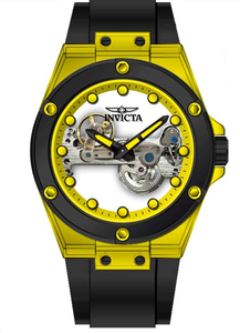 Band Material: Silicone, Band Tone: Black, Band Width: 30MM, Band Length: 210MM, Buckle Type: Buckle, Crown Type : Push, Case Material : Polyurethane, Case Tone : Yellow, Case Size [mm] : 48, Case Back : Exhibition, Material of Hands : Metal, Color of Hands : Black,Yellow, Crystal Type : Flame Fusion, Bezel Material : Stainless Steel, Dial Material : Stainless Steel, Dial Color : Yellow .Purchasing these parts and having a non-authorized repair center open your watch voids all manufacturing warranties. Invicta cannot guarantee the quality standards of an altered timepiece, the standard 3-year limited warranty on Invicta timepieces shall be invalid if the timepiece is serviced at any time by an unauthorized repair center. This includes battery replacements, which must be done at an Invicta authorized repair center in order to maintain the eligibility of the warranty. Please follow the link below to learn more about Invicta's warranty.https://cdn.invictawatch.com/www/files/invicta-warranty-2018.pdf