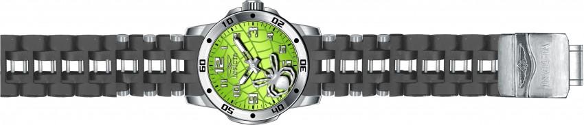 Individual Spare PARTS For Men Invicta Sea Spider 19783, Band Material Stainless Steel, Polyurethane, Band Color Grey, Steel, Band Width 26 MM, Band Length 215 MM, Buckle Type Diver, Clasp Type Safety, Crown Type Push, Case Material Stainless Steel, Case Tone Steel, Case Size (mm) 48, Case Back Solid, Material of Hands Metal, Color of Hands Silver, Crystal Type Flame Fusion, Bezel Material Stainless Steel, Dial Material Metal, Dial Color Green, Dial Pattern NonePurchasing these parts and having a non-authorized repair center open your watch voids all manufacturing warranties. Invicta cannot guarantee the quality standards of an altered timepiece, the standard 3-year limited warranty on Invicta timepieces shall be invalid if the timepiece is serviced at any time by an unauthorized repair center. This includes battery replacements, which must be done at an Invicta authorized repair center in order to maintain the eligibility of the warranty. Please follow the link below to learn more about Invicta's warranty.https://cdn.invictawatch.com/www/files/invicta-warranty-2018.pdf