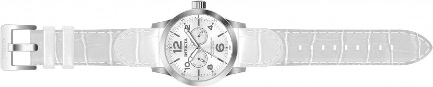 Band for Invicta Specialty 12170, Band Material: Leather, Band Color: White, Band Width: 24mm, Band Length: 235mm, Buckle Type: Regular, Clasp Type: Regular. Please note that bands do not ship with spring bars or T bars. If you need these parts, please add them to your cart with the corresponding part sku.