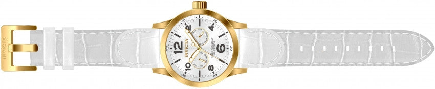 Band for Invicta Specialty 12174, Band Material: Leather, Band Color: White, Band Width: 24mm, Band Length: 235mm, Buckle Type: Regular, Clasp Type: Regular. Please note that bands do not ship with spring bars or T bars. If you need these parts, please add them to your cart with the corresponding part sku.