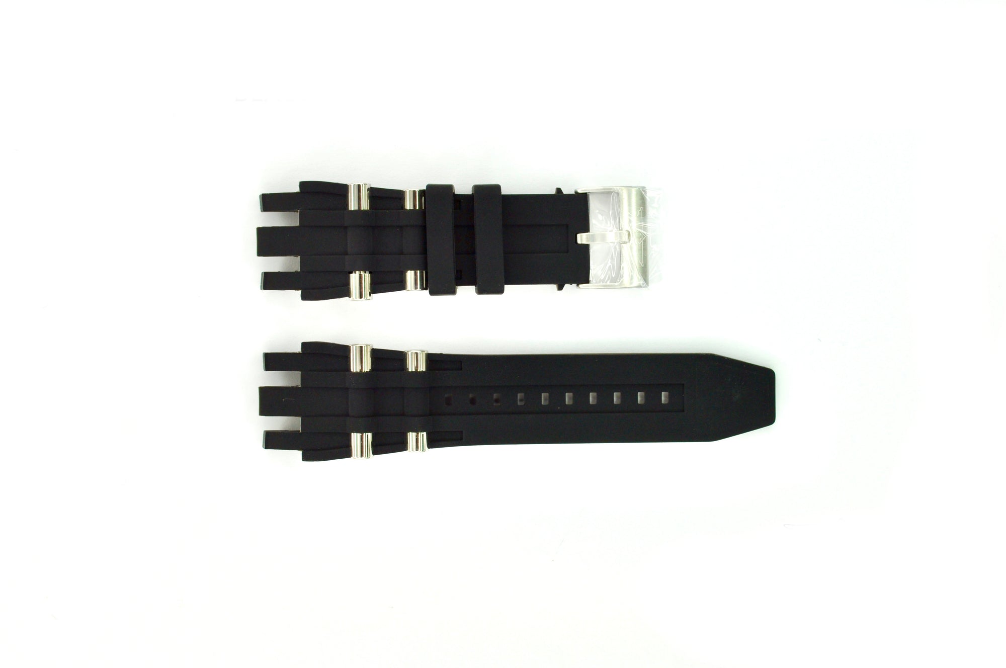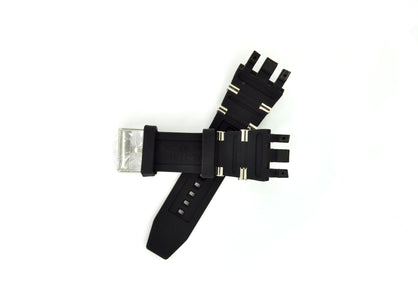 Band Material: Stainless Steel,Silicone, Band Tone: Steel,Black, Band Size [mm]: 31, Band Length [mm]: 210, Buckle Type: Buckle . Please note that bands do not ship with spring bars or T bars. If you need these parts, please add them to your cart with the corresponding part sku.