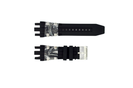 Band Material: Stainless Steel,Silicone, Band Tone: Steel,Black, Band Size [mm]: 31, Band Length [mm]: 210, Buckle Type: Buckle . Please note that bands do not ship with spring bars or T bars. If you need these parts, please add them to your cart with the corresponding part sku.