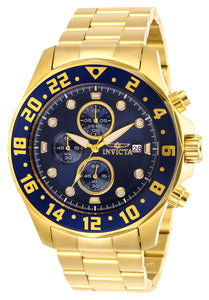 Individual Spare PARTS For Men Invicta Specialty 15942, Band Material Stainless Steel, Band Color Gold, Band Width 24 MM, Band Length 215 MM, Buckle Type Diver, Clasp Type Safety, Crown Type Push, Case Material Stainless Steel, Case Tone Gold, Case Size (mm) 48, Case Back Solid, Material of Hands Metal, Color of Hands Gold, Crystal Type Flame Fusion, Bezel Material Stainless Steel, Aluminum, Dial Material Metal, Dial Color Blue, Dial Pattern Sunray