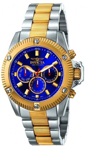 Individual Spare PARTS For Invicta Specialty 5720, Band Material Stainless Steel, Band Color Steel, Gold, Band Width 22 MM, Band Length 208 MM, Buckle Type Fold Over Safety, Clasp Type Foldover, Safety, Crown Type Push, Case Material Stainless Steel, Case Tone Gold, Steel, Case Size (mm) 43, Case Back Solid, Material of Hands Metal, Color of Hands Red, Gold, Crystal Type Flame Fusion, Bezel Material Stainless Steel, Dial Material Metal, Dial Color Blue, Dial Pattern Sunray