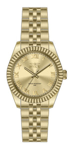 Band Material: Stainless Steel, Band Tone: Gold, Band Width: 18MM, Band Length: 166MM, Crown Type: Push, Case Material: Stainless Steel, Case Tone: Gold, Case Size [mm]: 36, Crystal Type: Mineral, Dial Material: Brass, Dial Color: Gold .Purchasing these parts and having a non-authorized repair center open your watch voids all manufacturing warranties. Invicta cannot guarantee the quality standards of an altered timepiece, the standard 3-year limited warranty on Invicta timepieces shall be invalid if the timepiece is serviced at any time by an unauthorized repair center. This includes battery replacements, which must be done at an Invicta authorized repair center in order to maintain the eligibility of the warranty. Please follow the link below to learn more about Invicta's warranty.https://cdn.invictawatch.com/www/files/invicta-warranty-2018.pdf