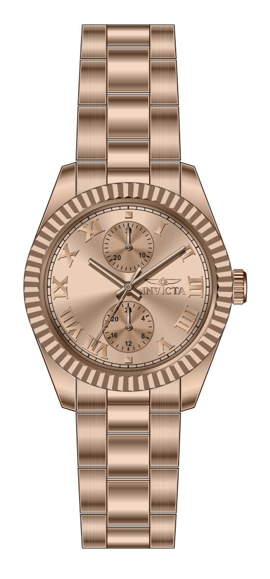 Band Material: Stainless Steel, Band Tone: Rose Gold, Band Width: 18MM, Band Length: 166MM, Crown Type: Push, Case Material: Stainless Steel, Case Tone: Rose Gold, Case Size [mm]: 36, Crystal Type: Mineral, Dial Material: Brass, Dial Color: Rose Gold .Purchasing these parts and having a non-authorized repair center open your watch voids all manufacturing warranties. Invicta cannot guarantee the quality standards of an altered timepiece, the standard 3-year limited warranty on Invicta timepieces shall be invalid if the timepiece is serviced at any time by an unauthorized repair center. This includes battery replacements, which must be done at an Invicta authorized repair center in order to maintain the eligibility of the warranty. Please follow the link below to learn more about Invicta's warranty.https://cdn.invictawatch.com/www/files/invicta-warranty-2018.pdf