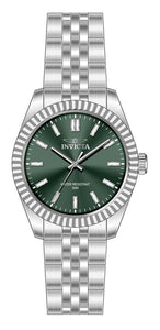 Band Material: Stainless Steel, Band Tone: Steel, Band Width: 18MM, Band Length: 166MM, Crown Type: Push, Case Material: Stainless Steel, Case Tone: Steel, Case Size [mm]: 36, Crystal Type: Mineral, Dial Material: Brass, Dial Color: Green .Purchasing these parts and having a non-authorized repair center open your watch voids all manufacturing warranties. Invicta cannot guarantee the quality standards of an altered timepiece, the standard 3-year limited warranty on Invicta timepieces shall be invalid if the timepiece is serviced at any time by an unauthorized repair center. This includes battery replacements, which must be done at an Invicta authorized repair center in order to maintain the eligibility of the warranty. Please follow the link below to learn more about Invicta's warranty.https://cdn.invictawatch.com/www/files/invicta-warranty-2018.pdf