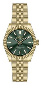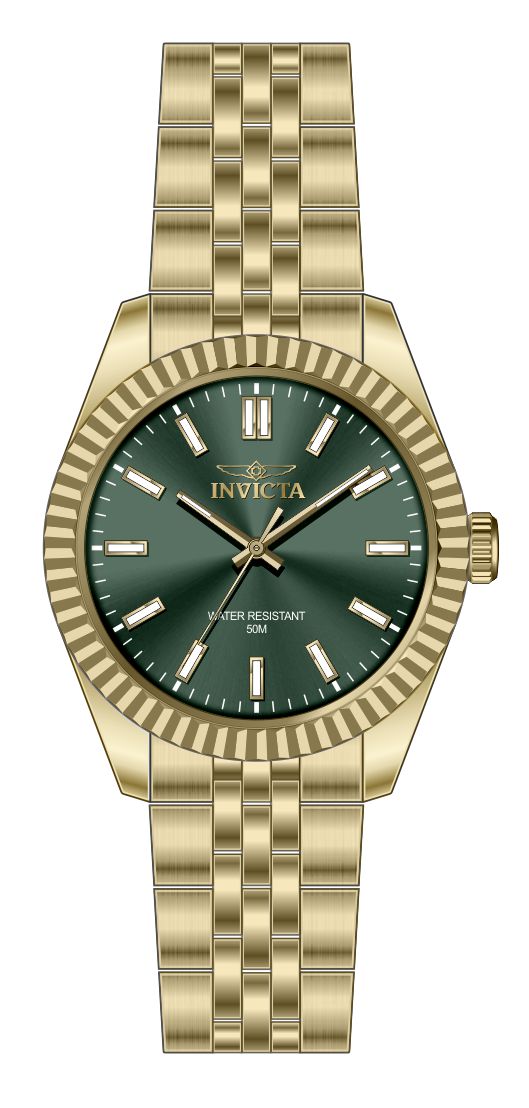 Band Material: Stainless Steel, Band Tone: Gold, Band Width: 18MM, Band Length: 166MM, Crown Type: Push, Case Material: Stainless Steel, Case Tone: Gold, Case Size [mm]: 36, Crystal Type: Mineral, Dial Material: Brass, Dial Color: Green .Purchasing these parts and having a non-authorized repair center open your watch voids all manufacturing warranties. Invicta cannot guarantee the quality standards of an altered timepiece, the standard 3-year limited warranty on Invicta timepieces shall be invalid if the timepiece is serviced at any time by an unauthorized repair center. This includes battery replacements, which must be done at an Invicta authorized repair center in order to maintain the eligibility of the warranty. Please follow the link below to learn more about Invicta's warranty.https://cdn.invictawatch.com/www/files/invicta-warranty-2018.pdf