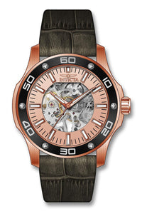 INVICTA Specialty Men 45mm Stainless Steel Rose Gold Rose Gold dial STBL-005BS(S.S.) Mechanical , Band Material: Leather, Band Tone: Grey, Band Size [mm]: 24, Band Length [mm]: 200, Buckle Type: Buckle , Crown Type : Push, Case Material : Stainless Steel, Case Tone : Rose Gold, Case Size (mm) : 45, Case Back : Exhibition, Material of Hands : Metal, Color of Hands : Rose Gold, Crystal Type : Flame Fusion, Bezel Material : Stainless Steel, Dial Material : Metal, Dial Color : Rose Gold .Purchasing these parts and having a non-authorized repair center open your watch voids all manufacturing warranties. Invicta cannot guarantee the quality standards of an altered timepiece, the standard 3-year limited warranty on Invicta timepieces shall be invalid if the timepiece is serviced at any time by an unauthorized repair center. This includes battery replacements, which must be done at an Invicta authorized repair center in order to maintain the eligibility of the warranty. Please follow the link below to learn more about Invicta's warranty.https://cdn.invictawatch.com/www/files/invicta-warranty-2018.pdf