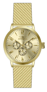 Band Material: Stainless Steel, Band Tone: Gold, Band Width: 22MM, Band Length: 205MM, Crown Type: Push, Case Material: Stainless Steel, Case Tone: Gold, Case Size [mm]: 44, Crystal Type: Flame Fusion, Dial Material: Brass, Dial Color: Gold .Purchasing these parts and having a non-authorized repair center open your watch voids all manufacturing warranties. Invicta cannot guarantee the quality standards of an altered timepiece, the standard 3-year limited warranty on Invicta timepieces shall be invalid if the timepiece is serviced at any time by an unauthorized repair center. This includes battery replacements, which must be done at an Invicta authorized repair center in order to maintain the eligibility of the warranty. Please follow the link below to learn more about Invicta's warranty.https://cdn.invictawatch.com/www/files/invicta-warranty-2018.pdf