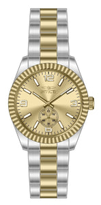 Band Material: Stainless Steel, Band Tone: Steel,Gold, Band Width: 22MM, Band Length: 176MM, Crown Type: Push, Case Material: Stainless Steel, Case Tone: Gold,Steel, Case Size [mm]: 43, Case Back: Solid, Material of Hands: Brass, Color of Hands: Gold,Luminous, Crystal Type: Mineral, Bezel Material: Stainless Steel, Dial Material: Brass, Dial Color: Gold, Dial Pattern: Sun-ray Finish .Purchasing these parts and having a non-authorized repair center open your watch voids all manufacturing warranties. Invicta cannot guarantee the quality standards of an altered timepiece, the standard 3-year limited warranty on Invicta timepieces shall be invalid if the timepiece is serviced at any time by an unauthorized repair center. This includes battery replacements, which must be done at an Invicta authorized repair center in order to maintain the eligibility of the warranty. Please follow the link below to learn more about Invicta's warranty.https://cdn.invictawatch.com/www/files/invicta-warranty-2018.pdf