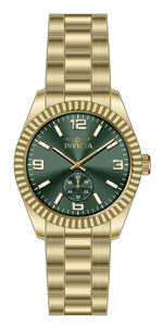 Band Material: Stainless Steel, Band Tone: Gold, Band Width: 22MM, Band Length: 176MM, Crown Type: Push, Case Material: Stainless Steel, Case Tone: Gold, Case Size [mm]: 43, Case Back: Solid, Material of Hands: Brass, Color of Hands: Gold,Luminous, Crystal Type: Mineral, Bezel Material: Stainless Steel, Dial Material: Brass, Dial Color: Green, Dial Pattern: Sun-ray Finish .Purchasing these parts and having a non-authorized repair center open your watch voids all manufacturing warranties. Invicta cannot guarantee the quality standards of an altered timepiece, the standard 3-year limited warranty on Invicta timepieces shall be invalid if the timepiece is serviced at any time by an unauthorized repair center. This includes battery replacements, which must be done at an Invicta authorized repair center in order to maintain the eligibility of the warranty. Please follow the link below to learn more about Invicta's warranty.https://cdn.invictawatch.com/www/files/invicta-warranty-2018.pdf